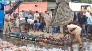 ಆಂಧ್ರಪ್ರದೇಶದ ಗುಂಟೂರಿನ ಏಟುಕೂರು ರಸ್ತೆಯ ವಿಲೇವಾರಿ ಸ್ಥಳದಲ್ಲಿ ಪೊಲೀಸರು ಅಕ್ರಮ ಮದ್ಯವನ್ನು ನಾಶಪಡಿಸುವ ಪ್ರಕ್ರಿಯೆಯಲ್ಲಿ ತೊಡಗಿದ್ದಾಗ ಮದ್ಯ ಪ್ರಿಯರು ಮದ್ಯದ ಬಾಟಲಿಗಳನ್ನು ತೆಗೆದುಕೊಳ್ಳಲು ಮುಂದಾಗಿರುವ ದೃಶ್ಯ ಕಂಡುಬಂದಿದೆ.