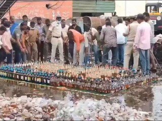 ಆಂಧ್ರಪ್ರದೇಶದ ಗುಂಟೂರಿನ ಏಟುಕೂರು ರಸ್ತೆಯ ವಿಲೇವಾರಿ ಸ್ಥಳದಲ್ಲಿ ಪೊಲೀಸರು ಅಕ್ರಮ ಮದ್ಯವನ್ನು ನಾಶಪಡಿಸುವ ಪ್ರಕ್ರಿಯೆಯಲ್ಲಿ ತೊಡಗಿದ್ದಾಗ ಮದ್ಯ ಪ್ರಿಯರು ಮದ್ಯದ ಬಾಟಲಿಗಳನ್ನು ತೆಗೆದುಕೊಳ್ಳಲು ಮುಂದಾಗಿರುವ ದೃಶ್ಯ ಕಂಡುಬಂದಿದೆ.