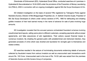 ವರದಿಗಳ ಪ್ರಕಾರ, ಸಾಯಿ ಸೂರ್ಯ ಡೆವಲಪರ್ಸ್ ಮತ್ತು ಸುರಾನಾ ಗ್ರೂಪ್ ಪ್ರಾರಂಭಿಸಿದ ರಿಯಲ್ ಎಸ್ಟೇಟ್ ಪ್ರಾಜೆಕ್ಟ್ಗಳನ್ನು ಮಹೇಶ್ ಬಾಬು ಬೆಂಬಲಿಸಿದ್ದರು. ಆದರೆ ಈ ಗ್ರೂಪ್ಸ್ ಗ್ರಾಹಕರನ್ನು ವಂಚಿಸಿದೆಯೆಂಬ ಆರೋಪವಿದೆ. ಹಾಗಾಗಿ, ನಟನ ಹಣ ವರ್ಗಾವಣೆ ಪ್ರಕರಣಕ್ಕೆ ಸಂಬಂಧಿಸಿದಂತೆ ಅವರಿಗೆ ನೋಟಿಸ್ ನೀಡಲಾಗಿದೆ.