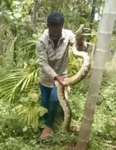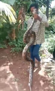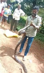 ರೈತರು ಅಡಿಕೆ ತೋಟದಲ್ಲಿ ಅಡಿಕೆ ಕೀಳಲು ಚಿಕ್ಕಹೆಜ್ಜಾಜಿ ಗ್ರಾಮದ ಕೋಳಿ ಅಂಗಡಿ ಅಪ್ಪಿ ಅವರು ಹೋದಾಗ, ಬೃಹತ್ ಹೆಬ್ಬಾವು ಕಾಣಿಸಿದ್ದು, ಕೂಡಲೇ ದೊಡ್ಡಬಳ್ಳಾಪುರದ ಉರುಗ ರಕ್ಷಕ ರಾಮಾಂಜಿನಪ್ಪನವರಿಗೆ ಮಾಹಿತಿ ರವಾನಿಸಿದ್ದಾರೆ. ಸ್ಥಳಕ್ಕೆ ಉರುಗ ರಕ್ಷಕ ಸ್ಥಳಕ್ಕೆ ಧಾವಿಸಿ ಸುರಕ್ಷಿತವಾಗಿ ಹೆಬ್ಬಾವನ್ನು ರಕ್ಷಣೆ ಮಾಡಿದ್ದಾರೆ….