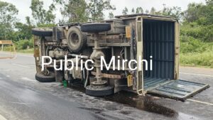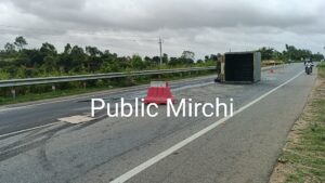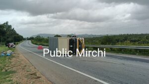ಬೆಂಗಳೂರಿನಿಂದ ಗೌರಿಬಿದನೂರು ಕಡೆಗೆ ಹೋಗುವ ವೇಳೆ ಇದ್ದಕ್ಕಿದ್ದಂತೆ ಟೈರ್ ಸ್ಫೋಟಗೊಂಡು ಚಾಲಕನ ನಿಯಂತ್ರಣ ತಪ್ಪಿ ನಡುರಸ್ತೆಯಲ್ಲಿ ಪಲ್ಟಿ ಹೊಡೆದಿದೆ.