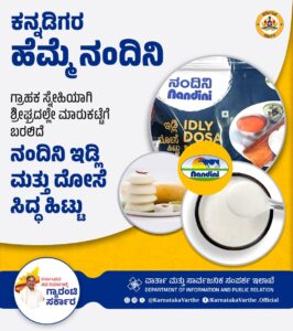 ಕರ್ನಾಟಕ ಹಾಲು ಉತ್ಪಾದಕರ ಮಹಾಮಂಡಳಿ (ಕೆಎಂಎಫ್) ನಂದಿನಿ ಬ್ರ್ಯಾಂಡ್ ಹೆಸರಿನಲ್ಲಿಯೇ ಇಡ್ಲಿ, ದೋಸೆಯ ಸಿದ್ಧ ಹಿಟ್ಟನ್ನು ಮಾರುಕಟ್ಟೆಗೆ ಬಿಡುಗಡೆಗೊಳಿಸಲು ಸಜ್ಜಾಗಿದೆ. ಹೊಸ ಉತ್ಪನ್ನ ಶೀಘ್ರದಲ್ಲೇ ಮಾರುಕಟ್ಟೆ ಪ್ರವೇಶಿಸಲಿದೆ.