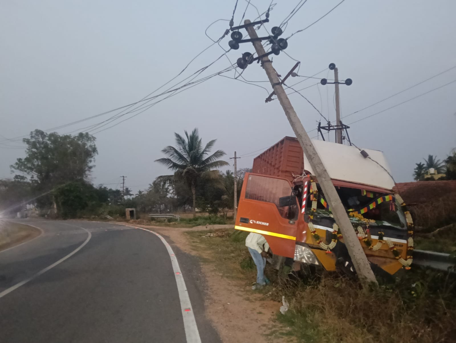 ಇಂದು ಮುಂಜಾನೆ ಸುಮಾರು 5:45ರಲ್ಲಿ ದೊಡ್ಡಬಳ್ಳಾಪುರದಿಂದ ಬರುವ ವಾಹನಗಳು ಚೆನ್ನದೇವಿ ಅಗ್ರಹಾರ ಪೆಟ್ರೋಲ್ ಬಂಕ್ ಸಮೀದ ತಿರುವಿನಲ್ಲಿ ಬೇರೊಂದು ವಾಹನವನ್ನು ಓವರ್ ಟೇಕ್ ಮಾಡುತ್ತಿದ್ದಾಗ ನೆಲಮಂಗಲದಿಂದ ಹೊಸಕೋಟೆ ಕಡೆ ಹೋಗುತ್ತಿದ್ದ ಕ್ಯಾಂಟರ್ ವಾಹನಕ್ಕೆ ಅಡ್ಡ ಹೋಗುತ್ತವೆ. ಈ ವೇಳೆ ಅಪಘಾತ ತಪ್ಪಿಸಲು ಕ್ಯಾಂಟರ್ ಚಾಲಕ ರಸ್ತೆಬದಿಗೆ ಗಾಡಿಯನ್ನು ಎಳೆದು ವಿದ್ಯುತ್ ಕಂಬಕ್ಕೆ ಡಿಕ್ಕಿ ಹೊಡೆಯುತ್ತಾನೆ.. ಸದ್ಯ ಅದೃಷ್ಟವಶಾತ್ ಯಾವುದೇ ಪ್ರಾಣಾಪಾಯ ಸಂಭವಿಸಿಲ್ಲ…