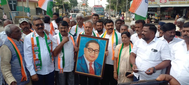 ಸಂದರ್ಭದಲ್ಲಿ ಮಾತನಾಡಿದ ಜಿಲ್ಲಾ ಕಾಂಗ್ರೆಸ್ ಪಕ್ಷ ಕಾರ್ಯಾಧ್ಯಕ್ಷ ಊರಬಾಗಿಲು ಶ್ರೀನಿವಾಸ್ ಮಾತನಾಡಿ ದೇಶದಲ್ಲಿ ಸಂಘಪರಿವಾರದವರಿಗೆ ಹಾಗೂ ಬಿಜೆಪಿ ಪಕ್ಷಕ್ಕೆ ಅಂಬೇಡ್ಕರ್ ಅವರ ಹೆಸರು ನುಂಗಲಾರದ ತುತ್ತಾಗಿದೆ ಬಿಜೆಪಿಯವರಿಗೆ ಅಧಿಕಾರಕ್ಕೇರಲು ಮಾತ್ರ ಸಂವಿಧಾನ ಬೇಕು ಆದರೆ ಅವರ ಆಶಯಗಳನ್ನು ವಿರೋಧಿಸಿಕೊಂಡು ಬಂದಿದ್ದಾರೆ ಬಿಜೆಪಿ ಪಕ್ಷದ ನಾಯಕರಲ್ಲಿ ಅಂಬೇಡ್ಕರ್ ಬಗ್ಗೆ ಮೊದಲಿಂದಲೂ ತಿರಸ್ಕಾರದ ಭಾವನೆ ಇದೆ ಎಂದೂ ಆರೋಪಿಸಿದರು.
