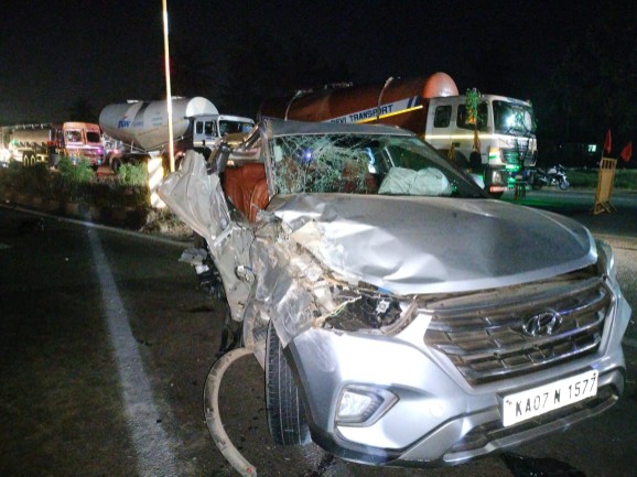 ಮೆಣಸಿ ಗೇಟ್ ಬಳಿ ಹಾದುಹೋಗಿರುವ ದಾಬಸ್ ಪೇಟೆ – ಹೊಸಕೋಟೆ ರಾಷ್ಟ್ರೀಯ ಹೆದ್ದಾರಿಯಲ್ಲಿ ತಿರುವು ಪಡೆಯುತ್ತಿದ್ದ ಜೆಸಿಬಿಗೆ ಕಾರು ಡಿಕ್ಕಿ ಹೊಡೆದಿದೆ. ಡಿಕ್ಕಿ ರಭಸಕ್ಕೆ ಕಾರಿನ ಮುಂಭಾಗ ಸಂಪೂರ್ಣ ಜಖಂಗೊಂಡಿದ್ದು, ಹಲವರಿಗೆ ಗಂಭೀರ ಗಾಯಗಳಾಗಿವೆ. ಗಾಯಾಳುಗಳನ್ನು ಆಸ್ಪತ್ರೆಗೆ ರವಾನಿಸಲಾಗಿದೆ..