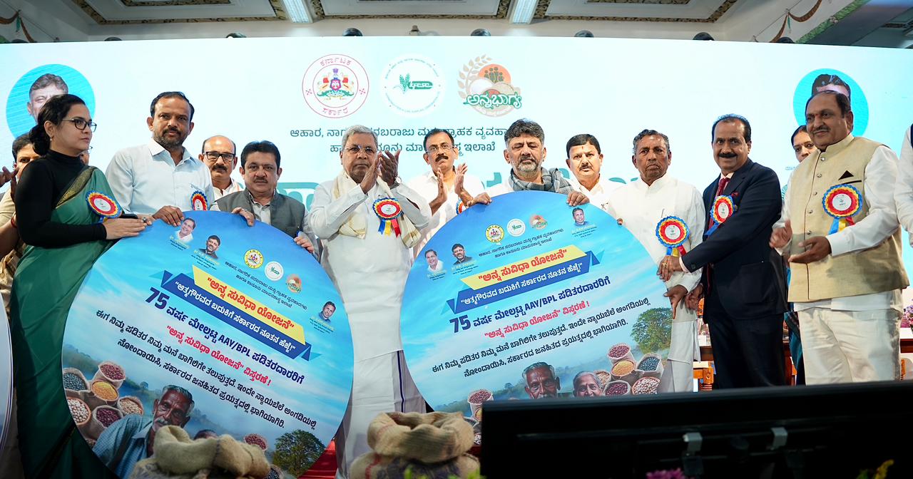 ಅನ್ನಭಾಗ್ಯ ಯೋಜನೆಯಡಿ ರಾಜ್ಯದಲ್ಲಿ 10,60,800 ಅಂತ್ಯೋದಯ ಅನ್ನಯೋಜನೆ ಮತ್ತು 1,26,00,959 ಆದ್ಯತಾ ಪಡಿತರ ಚೀಟಿಗಳು ಒಟ್ಟು 4,48,29,135 ಫಲಾನುಭವಿಗಳಿಗೆ ರಾಷ್ಟ್ರೀಯ ಆಹಾರ ಭದ್ರತಾ ಕಾಯ್ದೆ ಮತ್ತು ರಾಜ್ಯ ಸರ್ಕಾರದ ಹೆಚ್ಚುವರಿ 5 ಕೆ.ಜಿ. ಸೇರಿ ಒಟ್ಟು 10 ಕೆ.ಜಿ. ಅಕ್ಕಿ ಪ್ರತಿ ಸದಸ್ಯರಿಗೆ ಉಚಿತವಾಗಿ ವಿತರಿಸುವ ಮೂಲಕ ಹಸಿದ ಹೊಟ್ಟೆಗೆ ಅನ್ನ ನೀಡುವ ಮಹತ್ವ ಕೆಲಸವನ್ನು ಸರ್ಕಾರ ಮಾಡುತ್ತಿದೆ ಎಂದರು.