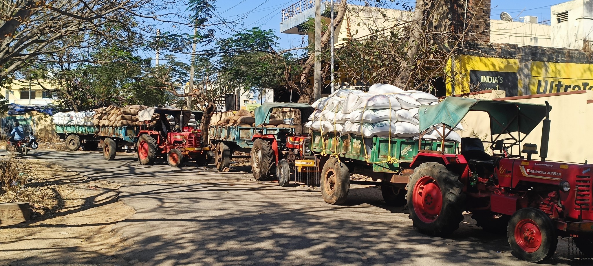 ಈಗಾಗಲೇ ನೋಂದಣಿ ಮಾಡಿಕೊಂಡಿರುವ ರೈತರು ಟ್ರ್ಯಾಕ್ಟರ್ ಹಾಗೂ ಇತರೆ ಗೂಡ್ಸ್ ವಾಹನಗಳಲ್ಲಿ ರಾಗಿ ತಂದಿದ್ದಾರೆ. ರಾಗಿ ಖರೀದಿ ಕೇಂದ್ರದಲ್ಲಿ ರಾಗಿ ಹೊತ್ತ ಟ್ರ್ಯಾಕ್ಟರ್ ಗಳು ಸಾಲುಗಟ್ಟಿ ನಿಂತಿರುವ ದೃಶ್ಯ ಕಂಡುಬಂದಿದೆ…..