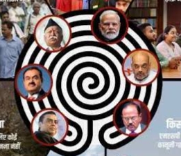 ಮುಂದುವರಿದು 21 ನೇ ಶತಮಾನದಲ್ಲಿ ಭಾರತದಲ್ಲಿ ಒಂದು ಹೊಸ ‘ಚಕ್ರವ್ಯೂಹ’ ರೂಪುಗೊಂಡಿದೆ. ಅದು ಕೂಡ ಕಮಲದ ರೂಪದಲ್ಲಿಯೇ ತನ್ನ ಚಿಹ್ನೆಯನ್ನು ಧರಿಸಿದೆ. ಪ್ರಧಾನಿ ನರೇಂದ್ರ ಮೋದಿಯವರು ಎದೆಯ ಮೇಲೆ ಧರಿಸಿರುತ್ತಾರೆ. ಈ ಚಕ್ರವ್ಯೂಹದ ರೂವಾರಿಗಳಾಗಿ ಆರು ಜನರಿದ್ದಾರೆ. ಅವರು ಯಾರೆಂದರೆ ಪ್ರಧಾನಿ ನರೇಂದ್ರ ಮೋದಿ, ಕೇಂದ್ರ ಗೃಹ ಸಚಿವ ಅಮಿತ್ ಶಾ, ಆರ್ಎಸ್ಎಸ್ ಮುಖ್ಯಸ್ಥ ಮೋಹನ್ ಭಾಗವತ್, ರಾಷ್ಟ್ರೀಯ ಭದ್ರತಾ ಸಲಹೆಗಾರ ಅಜಿತ್ ದೋವಲ್ ಹಾಗೂ ಉದ್ಯಮಿಗಳಾದ ಮುಖೇಶ್ ಅಂಬಾನಿ ಹಾಗೂ ಗೌತಮ್ ಅದಾನಿ ಇದ್ದಾರೆ ಎಂದು ಕೇಂದ್ರ ಸರ್ಕಾರಕ್ಕೆ ಟಾಂಗ್ ನೀಡುವ ಪ್ರಯತ್ನವನ್ನು ಮಾಡಿದರು.