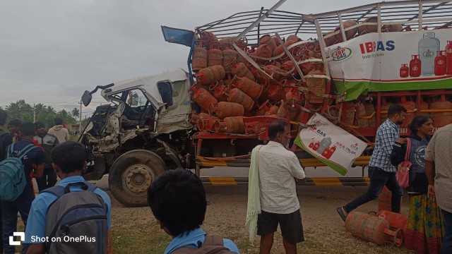ದೇವನಹಳ್ಳಿ ತಾಲೂಕಿನ ವಿಶ್ವನಾಥಪುರ ಗ್ರಾಮದ ಬಳಿ ಹಾದು ಹೋಗಿರುವ ದಾಬಸ್ ಪೇಟೆ- ಹೊಸಕೋಟೆ ಹೆದ್ದಾರಿಯಲ್ಲಿ ಇಟ್ಟಿಗೆ ತುಂಬಿದ್ದ ಟ್ರ್ಯಾಕ್ಟರ್ ಮತ್ತು ಗ್ಯಾಸ್ ಸಿಲಿಂಡರ್ ತುಂಬಿದ್ದ ಲಾರಿ ನಡುವೆ ಅಪಘಾತ ಸಂಭವಿಸಿದೆ.