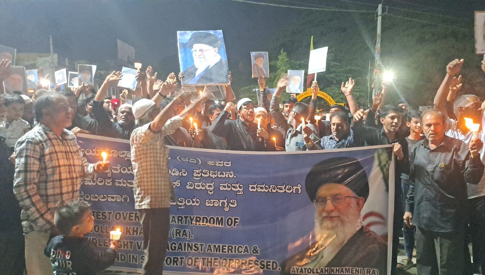 ಅಯಾತೊಲ್ಲಾ ಅಲಿ ಖಮೇನಿ ಅವರ ಹತ್ಯೆ ಖಂಡಿಸಿದ ಬರಹ,ಪೋಟೋಗಳನ್ನು ಹಿಡಿದು ಮೆರವಣಿಗೆಯಲ್ಲಿ ಸಾಗಿದ ಪ್ರತಿಭಟನಾಕಾರರು ಅಮೆರಿಕಾ,ಇಸ್ರೇಲ್ ಕ್ರಮದ ವಿರುದ್ಧ ಆಕ್ರೋಶ ವ್ಯಕ್ತಪಡಿಸಿದರು.ಮೆರವಣಿಗೆಯಲ್ಲಿ ಮಕ್ಕಳು ಸೇರಿದಂತೆ ವಯೋವೃದ್ಧರವರೆಗೂ ನೂರಾರು ಜನ ಭಾಗವಹಿಸಿದ್ದರು.