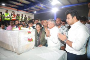 ಮೃತರ ಕುಟುಂಬಸ್ಥರ ಜೊತೆ ಕೇಂದ್ರ ಸಚವ ವಿ.ಸೋಮಣ್ಣ ಹಾಗೂ ಸಂಸದ ತೇಜಸ್ವಿ ಸೂರ್ಯ ಜೊತೆಯಿದ್ದು, ಧೈರ್ಯ ತುಂಬಿದರು.