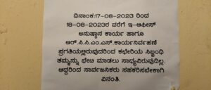 ಎಸಿ ಕಚೇರಿಯಲ್ಲಿ ಆಗಸ್ಟ್ 17 ಮತ್ತು 18ರಂದು ಇ-ಆಫೀಸ್ ಅನುಷ್ಠಾನ ಹಾಗೂ ಆರ್ಸಿಸಿಎಂಎಸ್ ಕಾರ್ಯನಿರ್ವಹಣೆ ಪ್ರಗತಿಯಲ್ಲಿರುವುದರಿಂದ ಕಚೇರಿ ಸಿಬ್ಬಂದಿ ತಮ್ಮನ್ನು ಭೇಟಿ ಮಾಡಲು ಸಾಧ್ಯವಿರುವುದಿಲ್ಲ ಆದ್ದರಿಂದ ಸಾರ್ವಜನಿಕರು ಸಹಕರಿಸಿ ಗೋಡೆ ಪ್ರಕಟಣೆಯನ್ನು ಪ್ರಕಟಿಸಿದ್ದು ಬಿಟ್ಟರೆ ಸಾರ್ವಜನಿಕವಾಗಿ ಯಾವುದೇ ಮಾಹಿತಿ ಒದಗಿಸಿರುವುದಿಲ್ಲ. ಇದರಿಂದ ಜನರು ಪರದಾಡುವಂತಾಗಿದೆ.