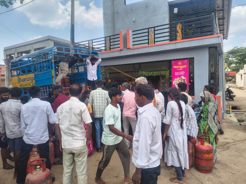 ಕೊಲ್ಲಿ ರಾಷ್ಟ್ರಗಳ ಯುದ್ಧದ ಬಿಕ್ಕಟ್ಟು ಭಾರತಕ್ಕೂ ತಟ್ಟಿರುವ ಹಿನ್ನೆಲೆ ದೇಶಾದ್ಯಂತ ಅಡುಗೆ ಅನಿಲ ಪೂರೈಕೆಯಲ್ಲಿ ಭಾರೀ ವ್ಯತ್ಯಯ ಉಂಟಾಗಿದೆ. ಪ್ರಸ್ತುತ ಎಲ್ಪಿಜಿ ಸಿಲಿಂಡರ್ ಕೊರತೆ ಇಲ್ಲದಿದ್ದರೂ ಮುಂದಿನ ದಿನಗಳಲ್ಲಿ ಅಭಾವ ಉಂಟಾಗಬಹುದು ಎಂಬ ಭೀತಿಯಿಂದ, ಸಿಲಿಂಡ ರ್ ಗಾಗಿ ಜನರು ಮುಗಿಬಿದ್ದಿದ್ದಾರೆ.
