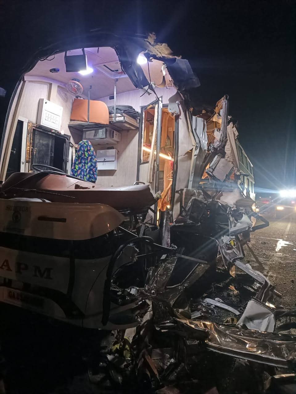 ಇಂದು ಬೆಳಗಿನ ಜಾವ 3 ಗಂಟೆ ಸಮಯದಲ್ಲಿ ನಡೆದ ಎಸಿ ಸ್ಲೀಪರ್ ಬಸ್ ಹಾಗೂ ಕಂಟೈನರ್ ಲಾರಿ ನಡುವಿನ ಭೀಕರ ಅಪಘಾತ ಪ್ರಕರಣಕ್ಕೆ ಸಂಬಂಧಿಸಿದಂತೆ ಕಂಟೈನರ್ ಲಾರಿಯಲ್ಲಿದ್ದ ಕ್ಲೀನರ್ ಸಾವನ್ನಪ್ಪಿದ್ದಾನೆ.