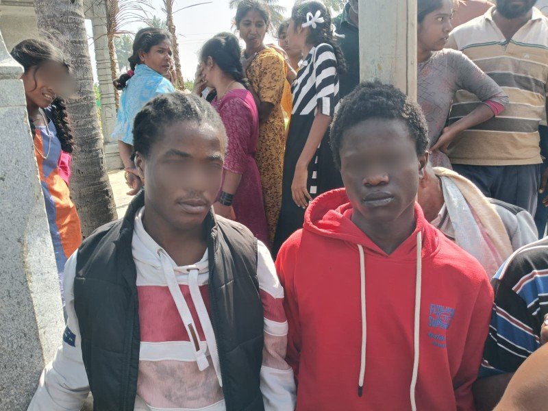 ಆಫ್ರಿಕಾ ಮೂಲದ 22 ವರ್ಷದ ಭಾ ಸುಲೇಮಾನ್, 21 ವರ್ಷದ ಕೊಲ್ಲೆ ಸಬಿಯನ್ ಎಂದು ಗುರುತಿಸಲಾಗಿದೆ. ಪೊಲೀಸರು ಅವರನ್ನು ನೆಲಮಂಗಲದಲ್ಲಿರುವ ನಿರಾಶ್ರಿತರ ಪುನರ್ವಸತಿ ಕೇಂದ್ರಕ್ಕೆ ಕರೆದೋಯ್ದಿದ್ದಾರೆ. ಆದರೆ ಅವರಿಬ್ಬರ ವೀಸಾ ಪಾಸ್ ಪೋರ್ಟ್ ಅವಧಿ ಮುಗಿದಿದ್ದ ಹಿನ್ನೆಲೆ ಬೆಂಗಳೂರಿನ ಶಾಂತಿನಗರದಲ್ಲಿರುವ FRRO ಗೆ ಬಿಡಲಾಗಿದೆ.