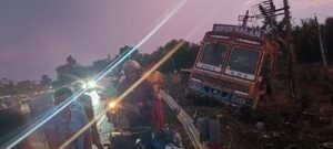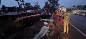 ಬೆಂಗಳೂರು ಕಡೆಯಿಂದ ಕಂಟೈನರ್ ತುಂಬಿಕೊಂಡು ಬರುತ್ತಿದ್ದ ಲಾರಿ ಸಿದ್ದೇನಾಯಕನಹಳ್ಳಿ ಬಳಿ ಹಾದುಹೋಗಿರುವ ಹೆದ್ದಾರಿಯಲ್ಲಿನ ತಿರುವಿನಲ್ಲಿ ನಿಯಂತ್ರಣ ತಪ್ಪಿ ರಸ್ತೆ ಬದಿಯಲ್ಲಿ ಅಳವಡಿಸಿದ್ದ ತಡೆಗೋಡೆ ಮುರಿದು ವಿದ್ಯುತ್ ಕಂಬಕ್ಕೆ ಡಿಕ್ಕಿ ಹೊಡೆದಿದೆ.