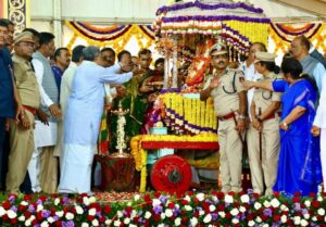 ಬರಗಾಲವಿದ್ದರೂ ನಮ್ಮ ಸಂಪ್ರದಾಯ ಮತ್ತು ವೈಭವಕ್ಕೆ ಕೊರತೆ ಇಲ್ಲದಂತೆ ಅರ್ಥಪೂರ್ಣ ದಸರಾ ಆಚರಿಸಲಾಗುವುದು. ನಮ್ಮ ಪರಂಪರೆ ಮತ್ತು ಹಿರಿಮೆಯನ್ನು ಜಗತ್ತಿಗೆ ಸಾರಲಾಗುವುದು. ಕನ್ನಡ ನಾಡಿನ ಸಮೃದ್ಧಿ, ಪ್ರಗತಿ, ಸಂಸ್ಕೃತಿ ಮತ್ತು ವೈಭವವನ್ನು ದಸರಾ ಮೂಲಕ ಜಗತ್ತಿಗೆ ಸಾರುವ ಕೆಲಸವನ್ನು ನಾವು ಮಾಡುತ್ತೇವೆ. ಸಾಂಸ್ಕೃತಿಕವಾಗಿ ಬಹಳ ಶ್ರೀಮಂತ ನಾಡು ನಮ್ಮದು. ನಮ್ಮ ಜನ ಬಹಳ ಸುಸಂಸ್ಕೃತರು, ಪ್ರೀತಿ ಹಂಚುವವರು. ಎಲ್ಲಾ ಜಾತಿ ಧರ್ಮದವರನ್ನು ಅತ್ಯಂತ ಪ್ರೀತಿಯಿಂದ, ಘನತೆಯಿಂದ ನಡೆಸಿಕೊಳ್ಳುವುದು ನಮ್ಮ ಧರ್ಮ ಮತ್ತು ಕರ್ತವ್ಯ ಎಂದರು.