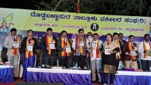 ದೊಡ್ಡಬಳ್ಳಾಪುರ ನಗರದ ಕೋರ್ಟ್ ಆವರಣದಲ್ಲಿ ತಾಲೂಕು ವಕೀಲರ ಸಂಘದ ವತಿಯಿಂದ ಆಯೋಜಿಸಿದ್ದ 68ನೇ ಕನ್ನಡ ರಾಜ್ಯೋತ್ಸವ ಹಾಗೂ ವಕೀಲರ ದಿನಾಚರಣೆ ಕಾರ್ಯಕ್ರಮ ಉದ್ಘಾಟಿಸಿ ಮಾತನಾಡಿದರು.