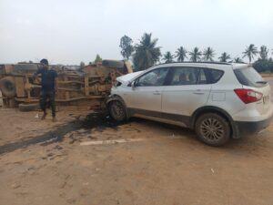 ತೆಲಂಗಾಣ ರಾಜ್ಯದ ನೋಂದಣಿಯ ಕಾರು ನಿಯಂತ್ರಣ ಕಳೆದುಕೊಂಡು ಬೊಲೆರೋ ವಾಹನಕ್ಕೆ ಗುದ್ದಿದೆ. ಸ್ಥಳಕ್ಕೆ ವಿಶ್ವನಾಥಪುರ ಪೊಲೀಸರು ಭೇಟಿ ನೀಡಿ ಪರಿಶೀಲಿಸಿದರು.