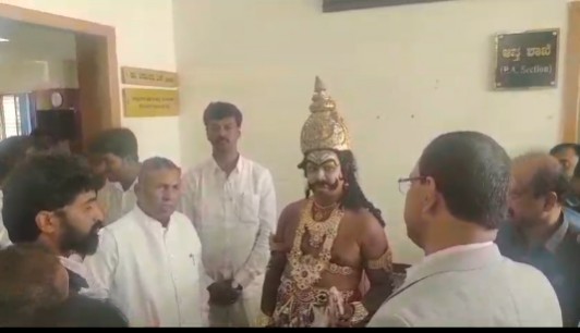 ದೊಡ್ಡಬಳ್ಳಾಪುರ: ಎರಡು ವರ್ಷಗಳಿಂದ ತಾಲ್ಲೂಕು ಮಟ್ಟದಿಂದ ಜಿಲ್ಲಾಧಿಕಾರಿಗಳವರೆಗೆ ಮನವಿ ನೀಡಿದರು, ಹತ್ತಾರು ಬಾರಿ ಕಚೇರಿಗೆ ಅಲೆದಾಡಿದರು ಸಹ ಮಾಲಿನ್ಯ ನಿಯಂತ್ರಣ ಮಂಡಲಿ ಕಚೇರಿ ಬೆಂಗಳೂರಿನಿಂದ ತಾಲ್ಲೂಕಿಗೆ ಸ್ಥಳಾಂತರ ಆಗದೇ ಇರುವುದು, ಶಾಲಾ ಆವರಣದ ಸಮೀಪವೇ ತಂಬಾಕು ಮಾರಾಟ ನಡೆಯುತ್ತಿದ್ದರು ನಿಯಂತ್ರಿಸದೇ ಇರುವುದು, ನಗರಸಭೆ ವತಿಯಿಂದ ಘನತ್ಯಾಜ್ಯ, ದ್ರವತ್ಯಾಜ್ಯ ನಿರ್ವಹಣೆ ಸರಿಯಾಗಿ ಮಾಡದೇ ಇರುವುದು, ನ್ಯಾಯಬೆಲೆ ಅಂಗಡಿಗಳನ್ನು ತಿಂಗಳು ಪೂರ ತೆರೆಯದೆ ಇರುವ ಸಮಸ್ಯೆಗಳನ್ನು ಪರಿಹರಿಸುವಲ್ಲಿ ಜಿಲ್ಲಾ ಆಡಳಿತ ಕುಂಬಕರ್ಣ ನಿದ್ರೆಯಲ್ಲಿ ಇದೆ ಎಂದು ಆರೋಪಿಸಿ ನಮ್ಮ ಮನವಿಗಳಿಗೆ ಹೊಸ ವರ್ಷದಲ್ಲಾದರು ಜಿಲ್ಲಾ ಆಡಳಿತ ನಿದ್ರೆಯಿಂದ ಎಚ್ಚರಗೊಂಡು ಪರಿಹಾರ ಸೂಚುಸುವಂತೆ ಎಚ್ಚರಿಸಲು ಹಾಗೂ ಶುಭಾಶಯ ಕೋರಿ ಯುವ ಸಂಚಲನ ತಂಡದ ಸದಸ್ಯರು ಕುಂಬಕರ್ಣ ವೇಷದಲ್ಲಿ ಜಿಲ್ಲಾ ಉಸ್ತುವಾರಿ ಸಚಿವ ಕೆ.ಎಚ್.ಮುನಿಯಪ್ಪ, ಜಿಲ್ಲಾಧಿಕಾರಿ ಎನ್. ಶಿವಶಂಕರ್ ಅವರಿಗೆ ಮನವಿ ಸಲ್ಲಿಸಿದರು.