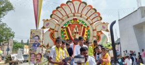 ಕಾರ್ಯಕ್ರಮದ ನಂತರ ಕನಕದಾಸರ ಭಾವಚಿತ್ರಗಳಿದ್ದ ಪಲ್ಲಕ್ಕಿಗಳು, ಸ್ತಬ್ಧಚಿತ್ರಗಳ ಮೆರವಣಿಗೆಗೆ ಜಿಲ್ಲಾ ಉಸ್ತುವಾರಿ ಸಚಿವ ಬೈರತಿ ಸುರೇಶ್ ಚಾಲನೆ ನೀಡಿದರು. ನಗರದ ಕನಕ ಮಂದಿರ ಮುಂಭಾಗದಿಂದ ಸ್ತಬ್ಧ ಚಿತ್ರಗಳ ಮೆರವಣಿಗೆಯು ಡೂಂಲೈಟ್ ವೃತ್ತ, ಎಂಜಿ ರಸ್ತೆ ಸೇರಿದಂತೆ ಪ್ರಮುಖ ರಸ್ತೆಗಳಲ್ಲಿ ಸಾಗಿತು. ಮಾಜಿ ಸಂಸದ ಎಸ್.ಮುನಿಸ್ವಾಮಿ ತಮಟೆ ಸದ್ದಿಗೆ ನೃತ್ಯ ಮಾಡಿದರೆ, ಶಾಸಕ ಕೊತ್ತೂರು ಮಂಜುನಾಥ್ ಪಲ್ಲಕ್ಕಿಯಿದ್ದ ಟ್ರಾಕ್ಟರ್ ಚಾಲನೆ ಮಾಡಿ ಗಮನಸೆಳೆದರು. ಮೆರವಣಿಗೆಯಲ್ಲಿ ಯಾವುದೇ ರೀತಿ ಅಹಿತಕರ ಘಟನೆಗಳು ನಡೆಯದಂತೆ ಪೊಲೀಸ್ ಬಂದೋಬಸ್ತ್ ವ್ಯವಸ್ಥೆ ಮಾಡಲಾಗಿತ್ತು.