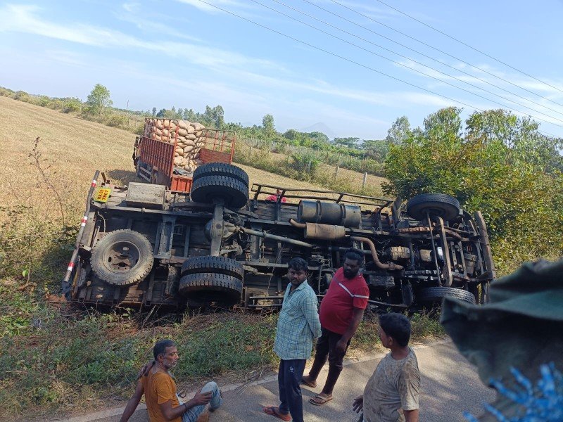 ಜೋಳ ತುಂಬಿದ್ದ ಕ್ಯಾಂಟರ್ ಲಾರಿಗೆ ಬೈಕ್ ಅಡ್ಡಬಂದಾಗ ಸಂಭವಿಸಬಹುದಾದ ಅನಾಹುತವನ್ನು ತಪ್ಪಿಸಲು ಹೋಗಿ ರಸ್ತೆ ಬದಿಗೆ ಪಲ್ಟಿ ಹೊಡೆದಿದೆ…