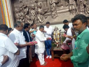 ವೇದಿಕೆ ಕಾರ್ಯಕ್ರಮಕ್ಕು ಮುನ್ನ ಜಿಲ್ಲಾ ಉಸ್ತುವಾರಿ ಸಚಿವರು ದೇವನಹಳ್ಳಿಯ ಕೆಂಪೇಗೌಡ ಅಂತರರಾಷ್ಟ್ರೀಯ ವಿಮಾನ ನಿಲ್ದಾಣದಲ್ಲಿರುವ “ನಾಡಪ್ರಭು ಕೆಂಪೇಗೌಡರ 108 ಅಡಿ ಎತ್ತರದ ಭವ್ಯ ಕಂಚಿನ ಪ್ರಗತಿಯ ಪ್ರತಿಮೆ”ಗೆ ಪುಷ್ಪಾರ್ಚನೆ ಮಾಡುವ ಮೂಲಕ ಗೌರವ ನಮನ ಸಲ್ಲಿಸಿದರು.