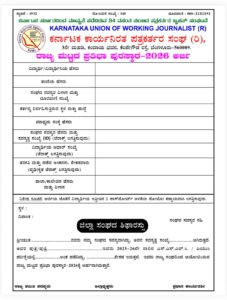 ಅಧ್ಯಕ್ಷರು/ಪ್ರಧಾನ ಕಾರ್ಯದರ್ಶಿ, ಕರ್ನಾಟಕ ಕಾರ್ಯನಿರತ ಪತ್ರಕರ್ತರ ಸಂಘ, 3ನೇ ಮಹಡಿ, ಕಂದಾಯ ಭವನ, ಕೆಜಿ ರಸ್ತೆ, ಬೆಂಗಳೂರು-09 ಇಲ್ಲಿಗೆ ತಲಪುವಂತೆ ಕಳುಹಿಸಬೇಕು.