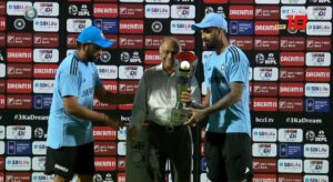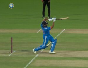 ಬೃಹತ್ ಮೊತ್ತ ಬೆನ್ನತ್ತಿದ್ದ ಭಾರತ ತಂಡದ ಆರಂಭಿಕ ಆಟಗಾರರಾದ ನಾಯಕ ರೋಹಿತ್ ಶರ್ಮಾ ಬಿರುಸಿನ ಆಕರ್ಷಕ ಅರ್ಧಶತಕ ಗಳಿಸಿದರು, ನಾಲ್ಕು ಬೌಂಡರಿ ಹಾಗೂ ಆರು ಸಿಕ್ಸರ್ ಸಿಡಿಸಿ (81) ರನ್ ಗಳಿಸುವ ಮೂಲಕ ಉತ್ತಮ ಅಡಿಪಾಯ ಹಾಕಿದರು.