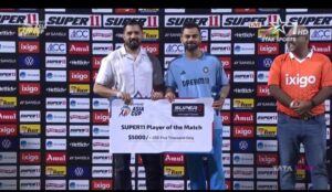 ಹೆಚ್ಚು ರನ್ ಗಳ ಹೊಳೆ ಹರಿಸಿದ ಹಿನ್ನೆಲೆ ವಿರಾಟ್ ಕೊಹ್ಲಿ ಪಂದ್ಯಶ್ರೇಷ್ಠ ಪ್ರಶಸ್ತಿ ಪಡೆದರು.