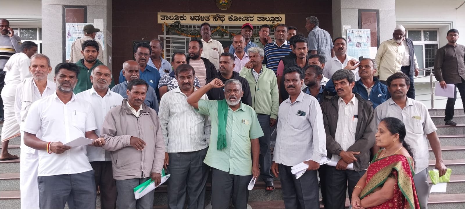 ಕೋಲಾರ: ಕೋಳಿ ಸಾಕಾಣಿಕೆಯನ್ನು ಕೃಷಿಯೆಂದು ಪರಿಗಣಿಸಿ, ಕುಕ್ಕುಟ ಉದ್ಯಮದ ಸಮರ್ಪಕ ನಿರ್ವಹಣೆಗೆ ಭೂ ಕಂದಾಯ ಕಾಯ್ದೆ1964ರ ಕಾನೂನು ರೂಪಿಸಬೇಕು. ಜೊತೆಗೆ ಕೋಳಿ ಸಾಕಾಣಿಕೆ ದರ ಕೆಜಿಗೆ 12 ರೂ ಪರಿಷ್ಕರಿಸಲು ಅಗತ್ಯ ಕ್ರಮ ವಹಿಸಲು ರಾಜ್ಯ ಸರ್ಕಾರವನ್ನು ರಾಜ್ಯ ಕೋಳಿ ಸಾಕಾಣಿಕೆದಾರರ ಕ್ಷೇಮಾಭಿವೃದ್ಧಿ ಸಂಘದ ವತಿಯಿಂದ ಸೋಮವಾರ ತಾಲೂಕು ಕಚೇರಿ ಮುಂದೆ ಪ್ರತಿಭಟನೆ ನಡೆಸಿದರು.