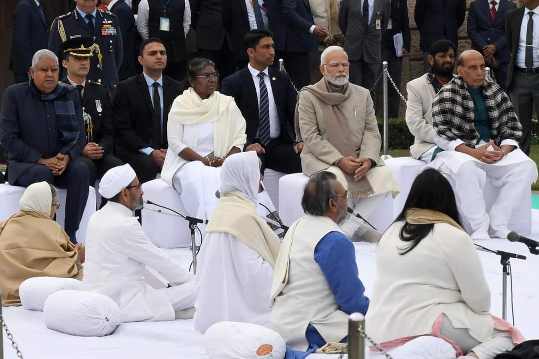 ಮಹಾತ್ಮ ಗಾಂಧಿ ಅವರಿಗೆ ಗೌರವ ಸಲ್ಲಿಸಿ ಸರ್ವ ಧರ್ಮ ಪ್ರಾರ್ಥನೆಯಲ್ಲಿ ರಾಷ್ಟ್ರಪತಿ ದ್ರೌಪದಿ ಮುರ್ಮು ಪಾಲ್ಗೊಂಡಿದ್ದರು.