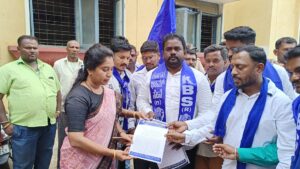 ಭೂಗಳ್ಳರು ಮತ್ತು ಅಧಿಕಾರಿಗಳ ವಿರುದ್ಧ ಘೋಷಣೆ ಕೂಗಿದ ಪ್ರತಿಭಟನಾಕಾರರು ತಹಸೀಲ್ದಾರ್ ಮೋಹನ ಕುಮಾರಿಯವರಿಗೆ ಮನವಿ ಪತ್ರ ಸಲ್ಲಿಸಿದರು.