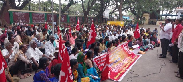 ಕೋಲಾರ: ಗ್ರಾಮ ಪಂಚಾಯಿತಿ ನೌಕರರಿಗೆ ಕನಿಷ್ಠ ವೇತನ, ಪಿಂಚಣಿ ಸೇರಿದಂತೆ ವಿವಿಧ ಬೇಡಿಕೆಗಳ ಈಡೇರಿಕೆಗೆ ಒತ್ತಾಯಿಸಿ ಬುಧವಾರ ಸಿಐಟಿಯು ನೇತೃತ್ವದ ಗ್ರಾಪಂ ನೌಕರರ ಸಂಘವು ನಗರದ ಜಿಲ್ಲಾ ಪಂಚಾಯತಿ ಕಛೇರಿ ಮುಂದೆ ಪ್ರತಿಭಟನೆ ನಡೆಸಿದರು.