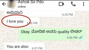 ಗ್ರಾಮ ಪಂಚಾಯ್ತಿ ಪಿಡಿಒಯೊಬ್ಬರು ಗ್ರಾ.ಪಂ ಅಧ್ಯಕ್ಷೆಗೆ ವಾಟ್ಸಾಪ್ ಚಾಟಿಂಗ್ ಮೂಲಕ ಎಂದು ಐಲವ್ ಯೂ ಎಂದು ಮೆಸೇಜ್ ಕಳುಸಿ ಜಾತಿ ನಿಂದನೆ ಮಾಡಿರುವ ಘಟನೆ ಚಿಕ್ಕಬಳ್ಳಾಪುರ ಜಿಲ್ಲೆಯ ಚೇಳೂರು ತಾಲ್ಲೂಕಿ ರಾಶ್ಚರುವು ಗ್ರಾಮ ಪಂಚಾಯ್ತಿಯಲ್ಲಿ ನಡೆದಿದೆ.