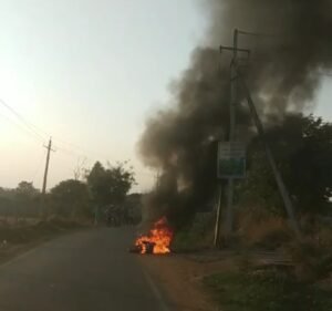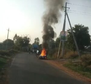 ಚಲಿಸುತ್ತಿದ್ದ ಎಲೆಕ್ಟ್ರಿಕ್ ಬೈಕ್ ನಲ್ಲಿ ಆಕಸ್ಮಿಕವಾಗಿ ಬೆಂಕಿ ಕಾಣಿಸಿಕೊಂಡು ಹೊತ್ತಿ ಉರಿದಿರುವ ಘಟನೆ ತಾಲೂಕಿನ ಕನ್ನಮಂಗಲ ಗೇಟ್ ಬಳಿ ನಿನ್ನೆ ಸಂಜೆ ಸುಮಾರು 6 ಗಂಟೆ ಸಮಯದಲ್ಲಿ ನಡೆದಿದ್ದು ತಡವಾಗಿ ಬೆಳಕಿಗೆ ಬಂದಿದೆ.