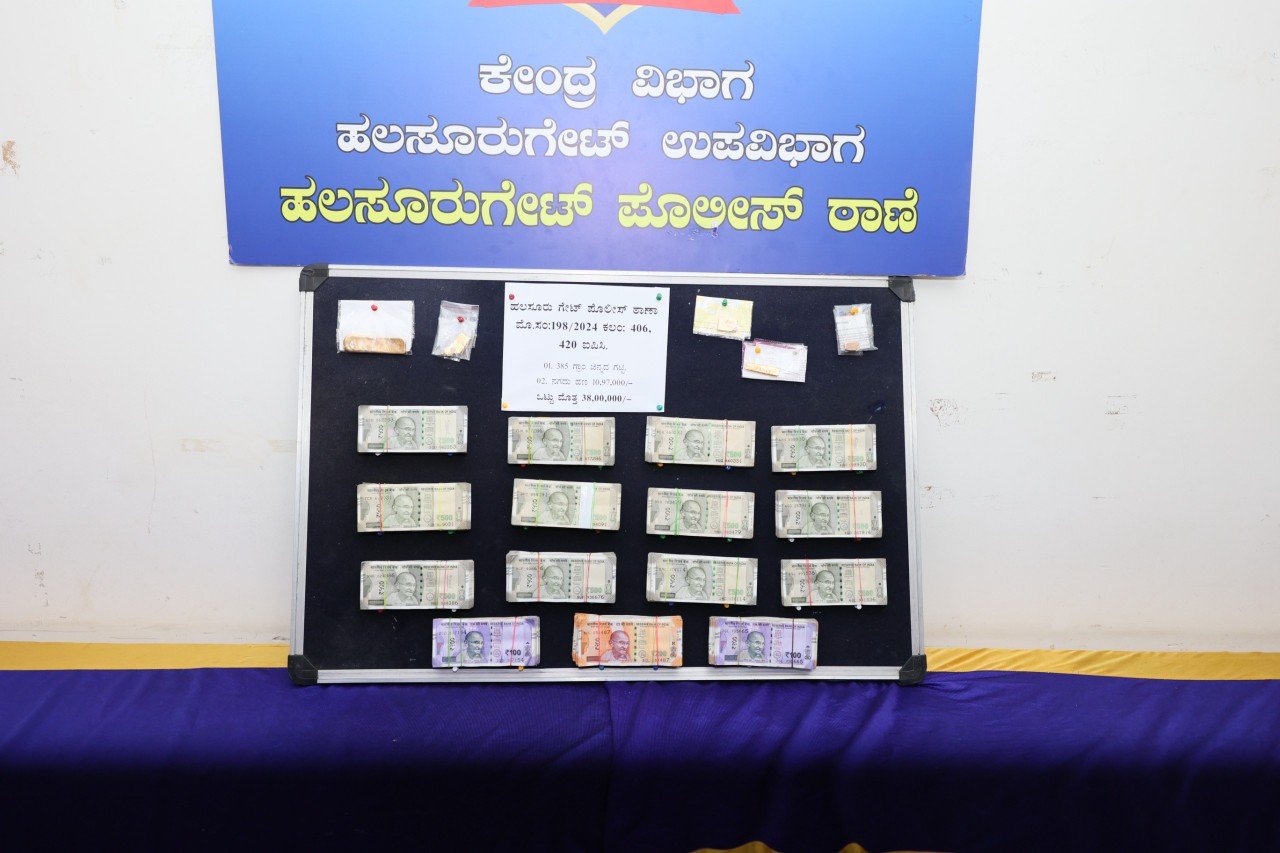 ಹಲಸೂರು ಪೊಲೀಸ್ ಠಾಣೆಯ ಅಧಿಕಾರಿಗಳು ವಂಚನೆ ಪ್ರಕರಣಕ್ಕೆ ಸಂಬಧಿಸಿದಂತೆ ವ್ಯಕ್ತಿಯೊಬ್ಬನನ್ನು ಬಂಧಿಸಿರುವ ಬಗ್ಗೆ ಬೆಂಗಳೂರು ನಗರ ಪೊಲೀಸ್ ಆಯುಕ್ತ ಬಿ.ದಯಾನಂದ್ ಅವರು ಮಾಹಿತಿ ನೀಡಿದರು. ಚಿನ್ನದ ಮಳಿಗೆ ಮಾಲೀಕರಿಗೆ ಚಿನ್ನ ಪಾಲೀಶ್ ಮಾಡುವುದಾಗಿ ಹೇಳಿ ನಂತರ ಚಿನ್ನದ ಸಮೇತ ಆರೋಪಿ ಪಲಾಯನ ಆಗುತ್ತಿದ್ದ. ಅರೋಪಿ ಬಂಧನದಿಂದ 384 ಗ್ರಾಂ ಚಿನ್ನ ಹಾಗೂ 10,99,779 ನಗದು ಸೇರಿ ಒಟ್ಟು 38 ಲಕ್ಷ ಮೌಲ್ಯದ ವಸ್ತುಗಳನ್ನು ವಶಪಡಿಸಿಕೊಳ್ಳಲಾಗಿದೆ ಎಂದರು.
