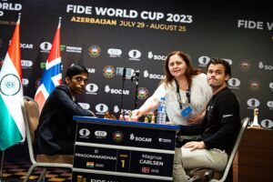ಚೆಸ್ ವಿಶ್ವಕಪ್ ಫೈನಲ್ ನ 2ನೇ ಪಂದ್ಯವೂ ಡ್ರಾ ದೊಂದಿಗೆ ಅಂತ್ಯವಾಗಿದೆ. ಭಾರತದ ಆರ್. ಪ್ರಜ್ಞಾನಂದ ಮತ್ತು ವಿಶ್ವದ ನಂ.1 ಆಟಗಾರ ಮ್ಯಾಗ್ನಸ್ ಕಾರ್ಲಸನ್ ನಾಳೆ(ಗುರುವಾರ) ಅಂತಿಮ ಟೈ ಬ್ರೇಕರ್ ಆಡಲಿದ್ದಾರೆ.