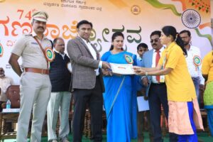 ದೇವನಹಳ್ಳಿ ಪಟ್ಟಣದ ಕ್ರೀಡಾಂಗಣದಲ್ಲಿಂದು ಬೆಂಗಳೂರು ಗ್ರಾಮಾಂತರ ಜಿಲ್ಲಾಡಳಿತ ಮತ್ತು ಜಿಲ್ಲಾ ಪಂಚಾಯಿತಿ ವತಿಯಿಂದ ಏರ್ಪಡಿಸಲಾದ 74ನೇ ಗಣರಾಜ್ಯೋತ್ಸವ ಕಾರ್ಯಕ್ರಮದಲ್ಲಿ ಆರೋಗ್ಯ ಮತ್ತು ಕುಟುಂಬ ಕಲ್ಯಾಣ ಸಚಿವರು, ವೈದ್ಯಕೀಯ ಶಿಕ್ಷಣ ಸಚಿವರು ಹಾಗೂ ಬೆಂಗಳೂರು ಗ್ರಾಮಾಂತರ ಜಿಲ್ಲಾ ಉಸ್ತುವಾರಿ ಸಚಿವರಾದ ಡಾ. ಕೆ. ಸುಧಾಕರ್ ಅವರು ಧ್ವಜಾರೋಹಣ ನೆರವೇರಿಸಿ, ತ್ರಿವರ್ಣ ಧ್ವಜಕ್ಕೆ ಗೌರವ ವಂದನೆ ಸಲ್ಲಿಸಿದರು.