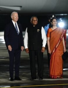 18ನೇ ಜಿ20 ಶೃಂಗಸಭೆಗಾಗಿ ಅಮೆರಿಕ ಅಧ್ಯಕ್ಷ ಜೋ ಬೈಡನ್ ಅವರು ಶುಕ್ರವಾರ ಸಂಜೆ ದೆಹಲಿಗೆ ವಿಶೇಷ ವಿಮಾನದಲ್ಲಿ ಬಂದಿಳಿದರು. ಬೈಡನ್ ಅವರನ್ನು ನಾಗರಿಕ ವಿಮಾನಯಾನ ರಾಜ್ಯ ಖಾತೆ ಸಚಿವ ಜನರಲ್ (ನಿವೃತ್ತ) ವಿಕೆ ಸಿಂಗ್ ಅವರು ಬರಮಾಡಿಕೊಂಡರು.