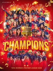 ವಡೋದರಾದಲ್ಲಿ ನಡೆದ ಡಬ್ಲ್ಯುಪಿಎಲ್ 2026 ಟೂರ್ನಿಯಲ್ಲಿ ರಾಯಲ್ ಚಾಲೆಂಜರ್ಸ್ ಬೆಂಗಳೂರು ತಂಡ ಡೆಲ್ಲಿ ತಂಡದ ವಿರುದ್ಧ 6 ವಿಕೆಟ್ ಗಳಿಂದ ಗೆದ್ದು ಸತತ 2 ನೇ ಬಾರಿಗೆ ಡಬ್ಲ್ಯುಪಿಎಲ್ ಕಪ್ ನ್ನು ಮುಡಿಗೇರಿಸಿಕೊಂಡು ಇತಿಹಾಸ ನಿರ್ಮಿಸಿದೆ.