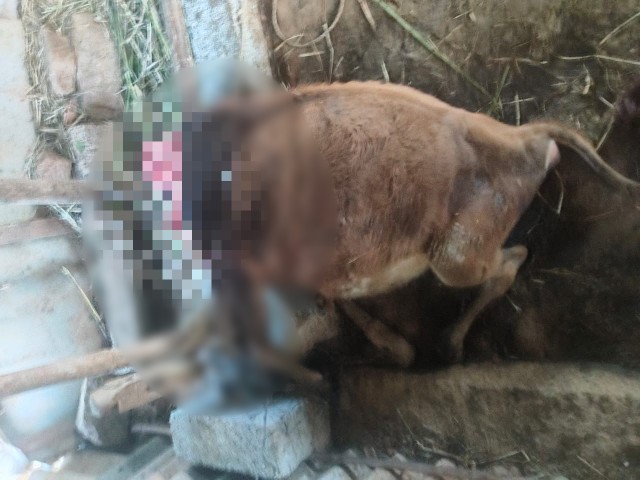 ತಂಬೇನಹಳ್ಳಿ ಗ್ರಾಮದ ನಂಜಪ್ಪ ಎಂಬುವರಿಗೆ ಸೇರಿದ ಹಸು, ಚಿರತೆ ದಾಳಿಗೆ ಬಲಿಯಾಗಿದೆ. ಇಂದು ಬೆಳಗ್ಗೆ ಹಾಲು ಕರೆಯಲು ಕೊಟ್ಟಿಗೆಗೆ ಬಂದಾಗ ಹಸುವಿನ ರುಂಡ-ಮುಂಡ ಬೇರೆಯಾಗಿ ಬಿದ್ದಿದ್ದನ್ನು ರೈತ ನಂಜಪ್ಪ ಗಮನಿಸಿ ಗಾಬರಿಯಾಗಿದ್ದಾರೆ.