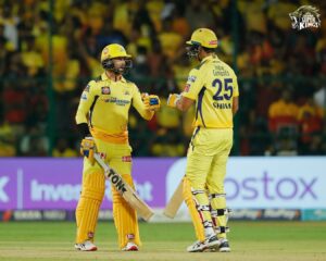 ಬೆಂಗಳೂರು: ಚಿನ್ನಸ್ವಾಮಿ ಕ್ರೀಡಾಂಗಣದಲ್ಲಿ ನಡೆದ ರಾಯಲ್ ಚಾಲೆಂಜರ್ಸ್ ಬೆಂಗಳೂರು ಹಾಗೂ ಚೆನ್ನೈ ಸೂಪರ್ ಕಿಂಗ್ಸ್ ನಡುವಿನ ಸಮಬಲ ಹೋರಾಟದ ಪಂದ್ಯದಲ್ಲಿ ಸಿಕ್ಸರ್ ಹಾಗೂ ಬೌಂಡರಿಗಳ ಚಿತ್ತಾರ ಮೂಲೆ-ಮೂಲೆಯಲ್ಲೂ ಬಿಡಿಸಿದ್ದರೂ ಕೊನೆಯ ಓವರ್ ನಲ್ಲಿ ಗೆಲುವು ಮಹೇಂದ್ರ ಸಿಂಗ್ ದೋನಿ ನಾಯಕತ್ವದ ಸಿಎಸ್ ಕೆ ಪಾಲಾಯಿತು.