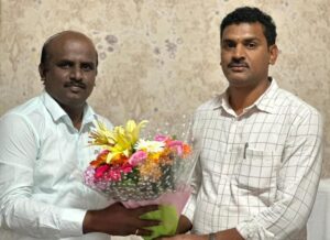 ದೊಡ್ಡಬಳ್ಳಾಪುರ ತಾಲೂಕು ಪಂಚಾಯಿತಿಯ ನೂತನ ಇಒ(ಕಾರ್ಯನಿರ್ವಾಹಕಾಧಿಕಾರಿ) ಆಗಿ ಅಧಿಕಾರ ಸ್ವೀಕರಿಸಿದ ಎನ್.ಮುನಿರಾಜು. ಪುಷ್ಪಗುಚ್ಛ ನೀಡುವ ಮೂಲಕ ಶುಭ ಕೋರಿ ಅಧಿಕಾರ ಹಸ್ತಾಂತರ ಮಾಡಿದ ನಿಕಟಪೂರ್ವ ಇಒ ಶ್ರೀನಾಥ್ ಗೌಡ.