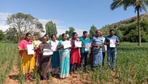 ಅಂದಿನ ಭೂ‌ಮಂಜೂರಾತಿ ಸಲಹಾ ಸಮಿತಿಯಲ್ಲಿ ಟಿ .ಕೆಂಪಹನುಮಯ್ಯ, ಲಕ್ಷ್ಮಿದೇವಮ್ಮ, ಕೆ. ಸಿ.ಗುರುರಾಜಪ್ಪ ಸದಸ್ಯರಾಗಿದ್ದರು. ಈ ಸಮಿತಿಯ ಆದೇಶದಂತೆ 2.10 ಗುಂಟೆ ಜಮೀನಿನಲ್ಲಿ ಕೃಷ್ಣಪ್ಪ ಬಿನ್ ನರಸಪ್ಪನವರ ಕುಟುಂಬ ವ್ಯವಸಾಯ ಮಾಡುತ್ತಿತ್ತು. ಈ ಮಧ್ಯೆ ಚಿಕ್ಕಬಳ್ಳಾಪುರದ ನಿವಾಸಿಯಾದ ಕೃಷ್ಣಪ್ಪ ಬಿನ್ ಗಿರಿಯಪ್ಪ ಎಂಬುವರು ಆಂಧ್ರ ಮೂಲದ ಕೆಲ ಪ್ರಭಾವಿಗಳ ಬೆಂಬಲದಿಂದ 2006ರಲ್ಲಿ ನಕಲಿ ದಾಖಲಾತಿ ಸೃಷ್ಟಿಸಿ 9.17 ಗುಂಟೆ ಜಮೀನು ಪೈಕಿ 5.10ಗುಂಟೆ ಜಮೀನನ್ನು ಕೃಷ್ಣಪ್ಪ ಸನ್ ಆಫ್ ಗಿರಿಯಪ್ಪ ಅವರ ಹೆಸರಿಗೆ ಎಸಿ ಕಚೇರಿಯಲ್ಲಿ ಅಕ್ರಮವಾಗಿ ಆದೇಶ ಮಾಡಿಸಿಕೊಂಡಿದ್ದಾರೆ. ಹಾಗೆಯೇ ಡಿಸಿ ಕಚೇರಿಯಲ್ಲಿ ಆರ್. ಪಿ.ಸಂಖ್ಯೆ 102/2015 16 ಜಿಲ್ಲಾಧಿಕಾರಿಗಳ ನ್ಯಾಯಾಲಯದಲ್ಲಿ ಅಡಕ್ರಮವಾಗಿ ಆದೇಶ ಮಾಡಿಸಿಕೊಂಡಿದ್ದಾರೆ. ಇನ್ನು ಉಳಿಕೆ 3.24 ಎಕರೆ ಜಮೀನನಲ್ಲಿ 2.10ಎಕರೆ ನಮ್ಮ ಹೆಸರಿನಲ್ಲೇ ಇದೆ. ಈಗ ಪಹಣಿಯಲ್ಲಿ ಸರ್ಕಾರಿ ಫಡ ಎಂದು ಹೆಸರಿಸಿ,ಅಧಿಕಾರಿಗಳ ಮೂಲಕ‌ ಕಬಳಿಸಲು ಯತ್ನಿಸುತ್ತಿದ್ದಾರೆ. ಬಾಡಿಗೆ ಗೂಂಡಾಗಳು ಹಾಗೂ ದಲ್ಲಾಳಿಗಳನ್ನು ಕರೆತಂದು ಬೆದರಿಸುತ್ತಿದ್ದಾರೆ ಎಂದು ಗಾಯಿತ್ರಮ್ಮ ಆರೋಪಿಸಿದರು.