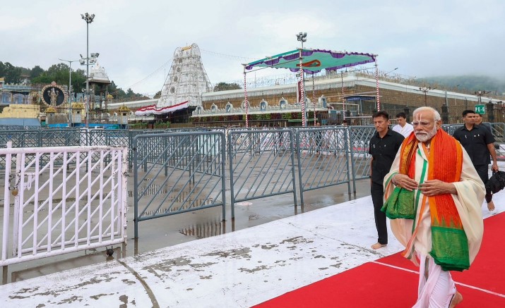ಪ್ರಧಾನಮಂತ್ರಿ ನರೇಂದ್ರ ಮೋದಿ ಅವರು ಇಂದು ದಕ್ಷಿಣ ಭಾರತದ ಪ್ರಸಿದ್ಧ ಹಾಗೂ ದೇಶದ ಶ್ರೀಮಂತ ತಿರುಪತಿ ತಿಮ್ಮಪ್ಪನ ದೇವಸ್ಥಾನಕ್ಕೆ ಭೇಟಿ ನೀಡಿ, ವೆಂಕಟೇಶ್ವರನ ದರ್ಶನ ಪಡೆದು ದೇವಾಲಯದಲ್ಲಿ ವಿಶೇಶ ಪ್ರಾರ್ಥನೆ ಸಲ್ಲಿಸಿದಿದ್ದಾರೆ.