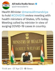 ಸೋಂಕು ಪ್ರಕರಣ ಹೆಚ್ಚಾಗುತ್ತಿರುವ ಹಿನ್ನೆಲೆ ಇಂದು ಕೇಂದ್ರ ಆರೋಗ್ಯ ಮತ್ತು ಕುಟುಂಬ ಕಲ್ಯಾಣ ಇಲಾಖೆ ಸಚಿವ ಡಾ. ಮನ್ಸುಖ್ ಮಾಂಡವಿಯಾ ಅವರು ಎಲ್ಲಾ ರಾಜ್ಯಗಳ ಆರೋಗ್ಯ ಸಚಿವರ ಜೊತೆ ವಿಡಿಯೋ ಕಾನ್ಫರೆನ್ಸ್ ಮೂಲಕ ಮಾತುಕತೆ ನಡೆಸಿದ್ದಾರೆ.
