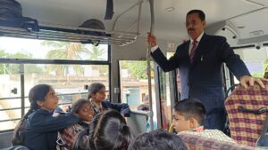 ಮಜರಾಹೊಸಹಳ್ಳಿ ಗ್ರಾಮ ಪಂಚಾಯಿತಿಯಲ್ಲಿ ಪರಿಶೀಲನೆ ನಡೆಸಿ ಮತ್ತೊಂದು ಪಂಚಾಯಿತಿಗೆ ತೆರಳುತ್ತಿದ್ದಾಗ ಶಾಲಾ ಬಸ್ಸಿನಲ್ಲಿ ಮಕ್ಕಳನ್ನು ಕಂಡು ಕೂಡಲೇ ಶಾಲಾ ಬಸ್ ನಿಲ್ಲಿಸಿ ಕೆಲಕಾಲ ಮಕ್ಕಳ ಬಳಿ ಸಂವಾದ ನಡೆಸಿದರು.