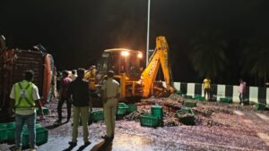 ದೊಡ್ಡಬಳ್ಳಾಪುರ: ದ್ರಾಕ್ಷಿ ತುಂಬಿದ್ದ ಕ್ಯಾಂಟರ್ ಚಾಲಕನ ನಿಯಂತ್ರಣ ತಪ್ಪಿ ಪಲ್ಟಿಯಾಗಿದ ಘಟನೆ ತಾಲೂಕಿನ ತಾಲೂಕಿನ ಮಧುರನಹೊಸಹಳ್ಳಿ ಗೇಟ್ ಬಳಿ ನಡೆದಿದೆ.