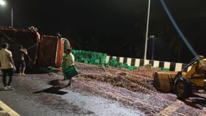 ಅದೃಷ್ಟವಶಾತ್ ಚಾಲಕ ಮತ್ತು ಕ್ಲೀನರ್ ಪ್ರಾಣಾಪಾಯದಿಂದ ಪಾರಾಗಿದ್ದಾರೆ. ಕ್ಯಾಂಟರ್ ಬಿದ್ದ ಕಾರಣ ಕೆಲ ಕಾಲ ಟ್ರಾಫಿಕ್ ಜಾಮ್ ಉಂಟಾಗಿತ್ತು.